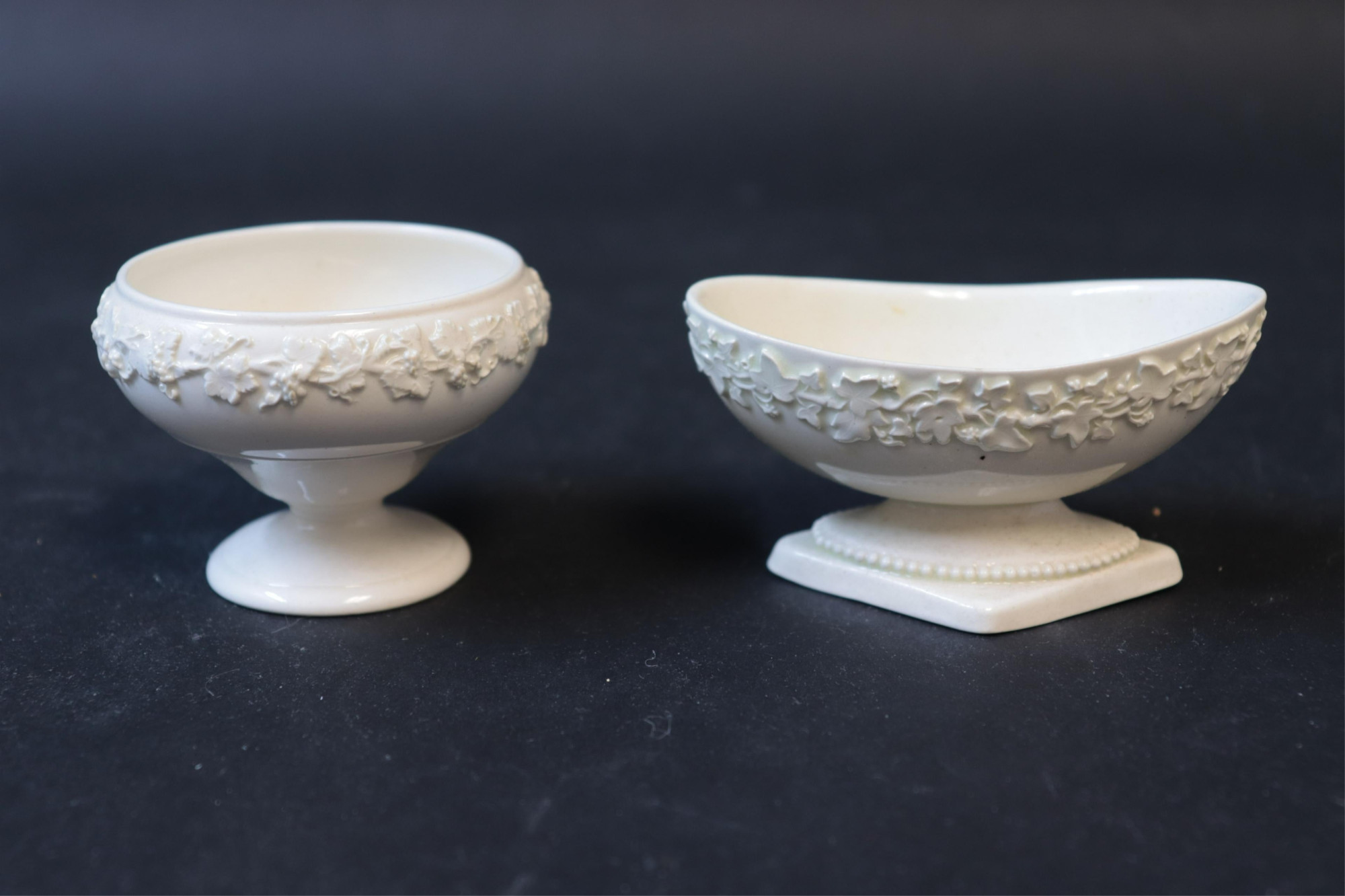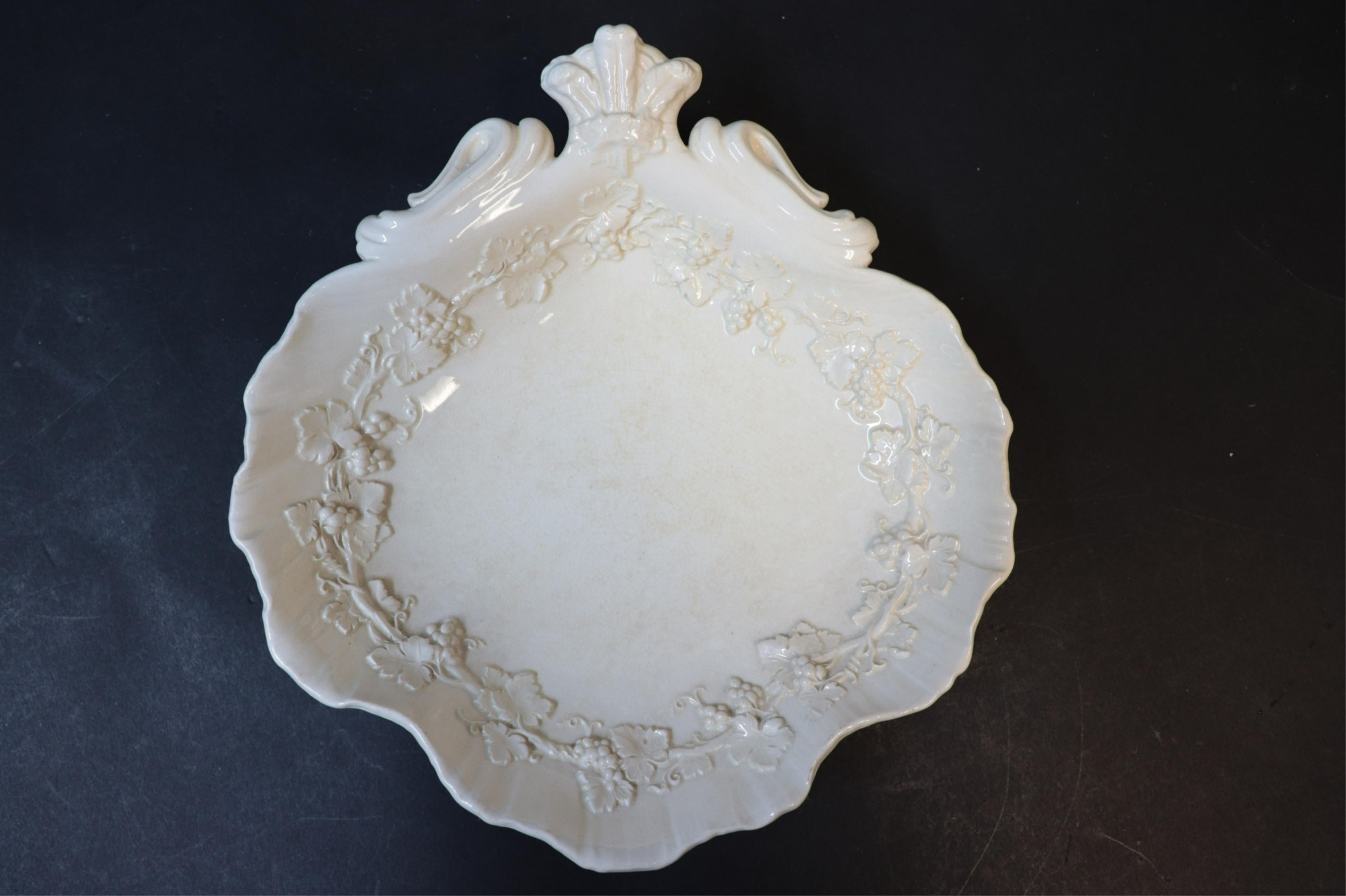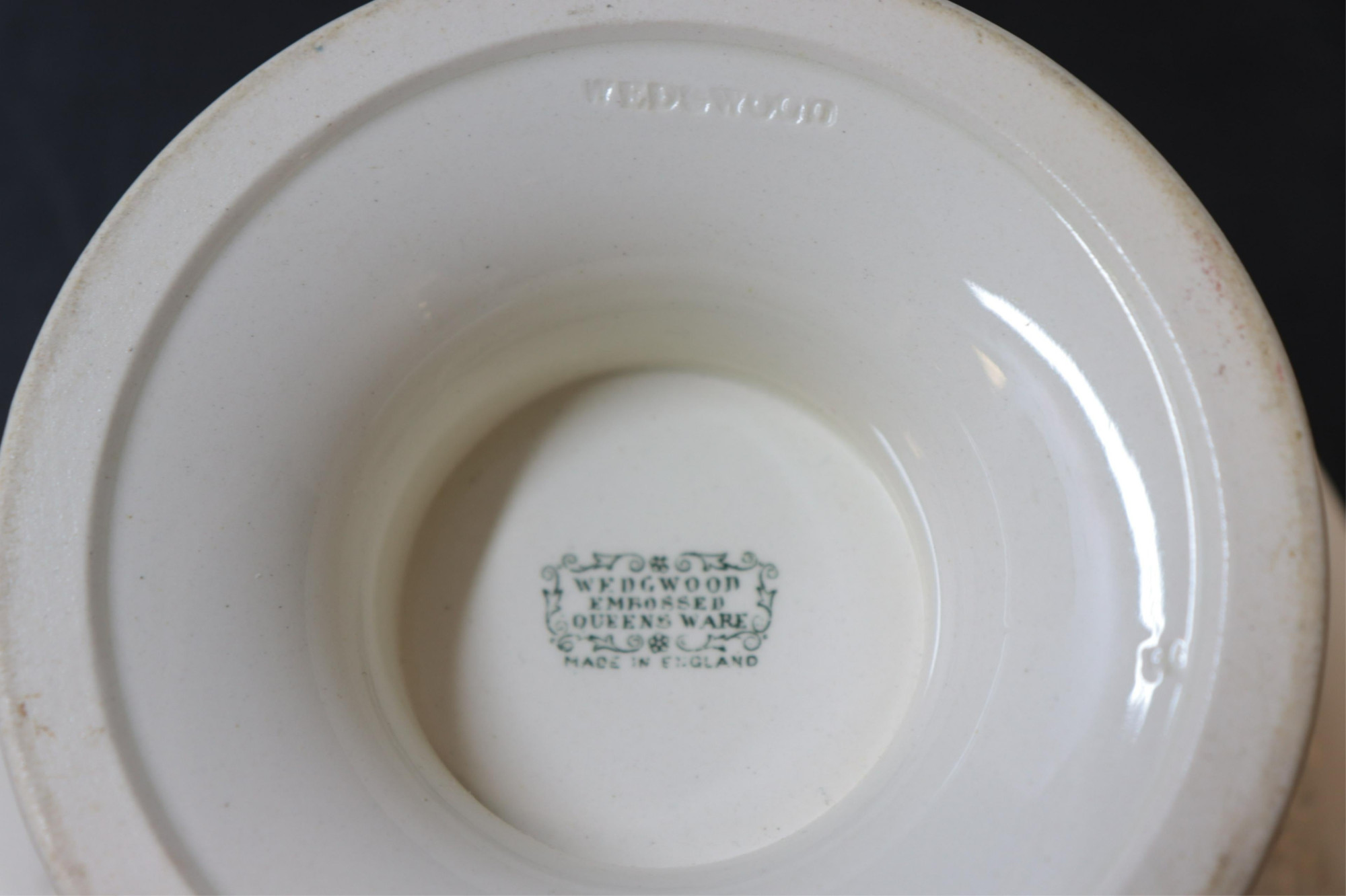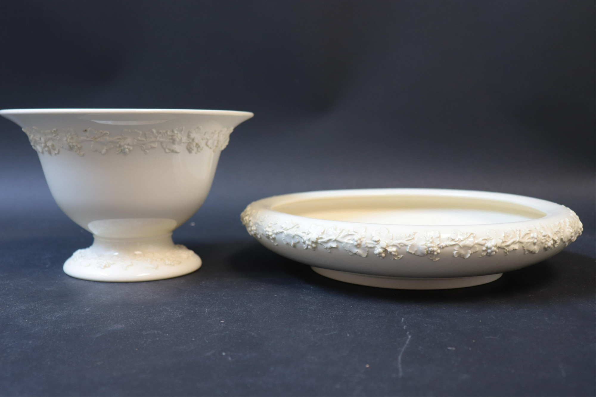 10 Pcs. Queensware Wedgwood, with grape cine decoration, mostly print marks, shell dish and flat bowl with impressed marks (10 pc.) Part II from a major collection of Wedgwood, Long Island, NY Dimensions: Bowl 2 1/2" H x 12" Dia., shell 2 1/2" H x 8 3/4" W (ZWED4487/10)(WT)