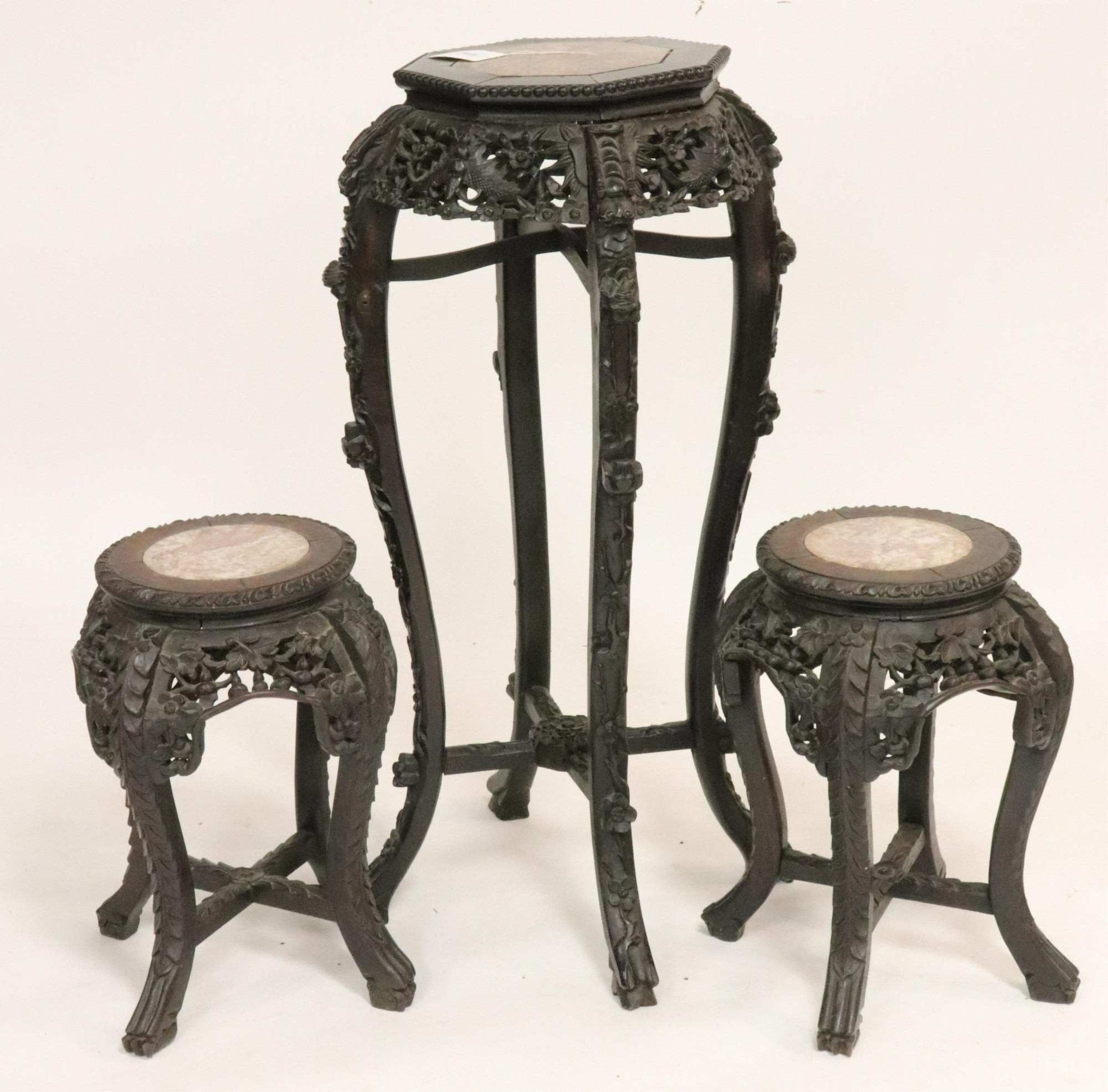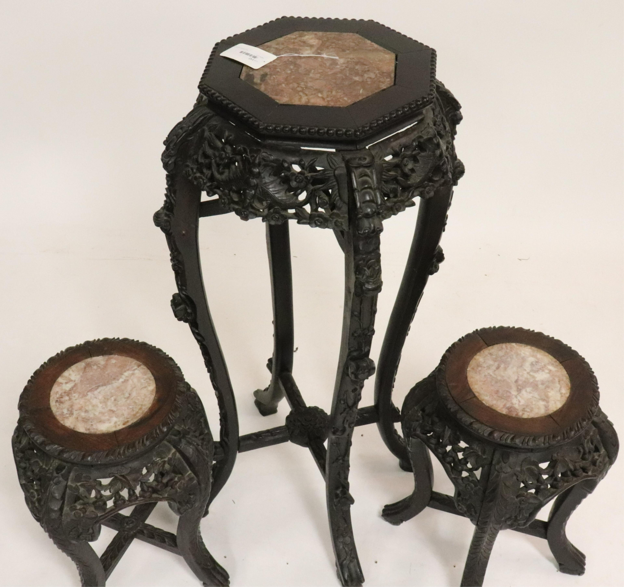 One tall stand, two smaller as a pair. Dimensions: (2) 18"H x 15 x 15 (1) 35.5 x 19.5 x 19.5 (BSTA6142/3)(JP)