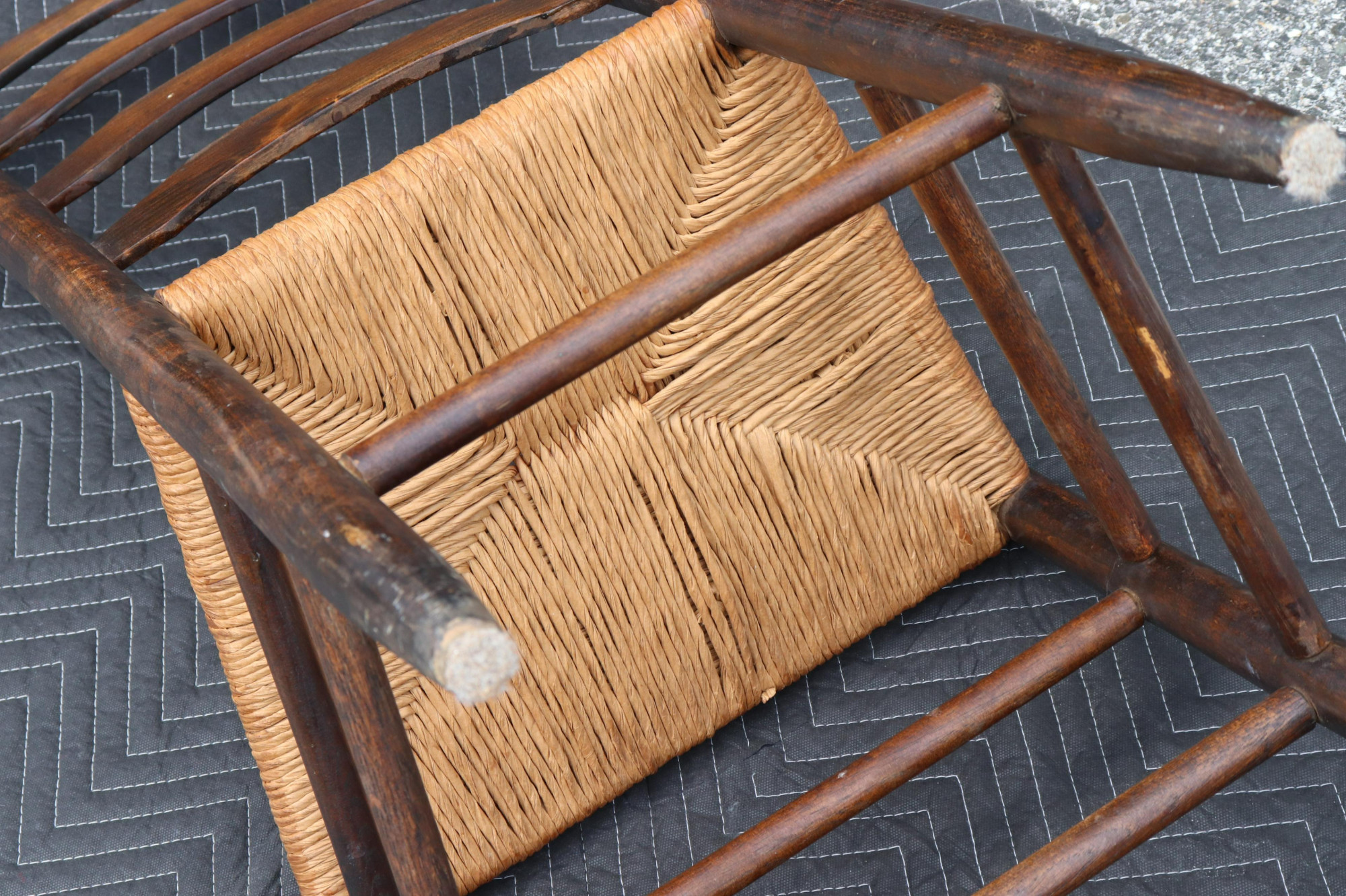 stepped ladderback, acorn turned with woven rush seats From a Pawling New York Home Dimensions: 43 x 18 x 14 (USPR6367/7)(MM)