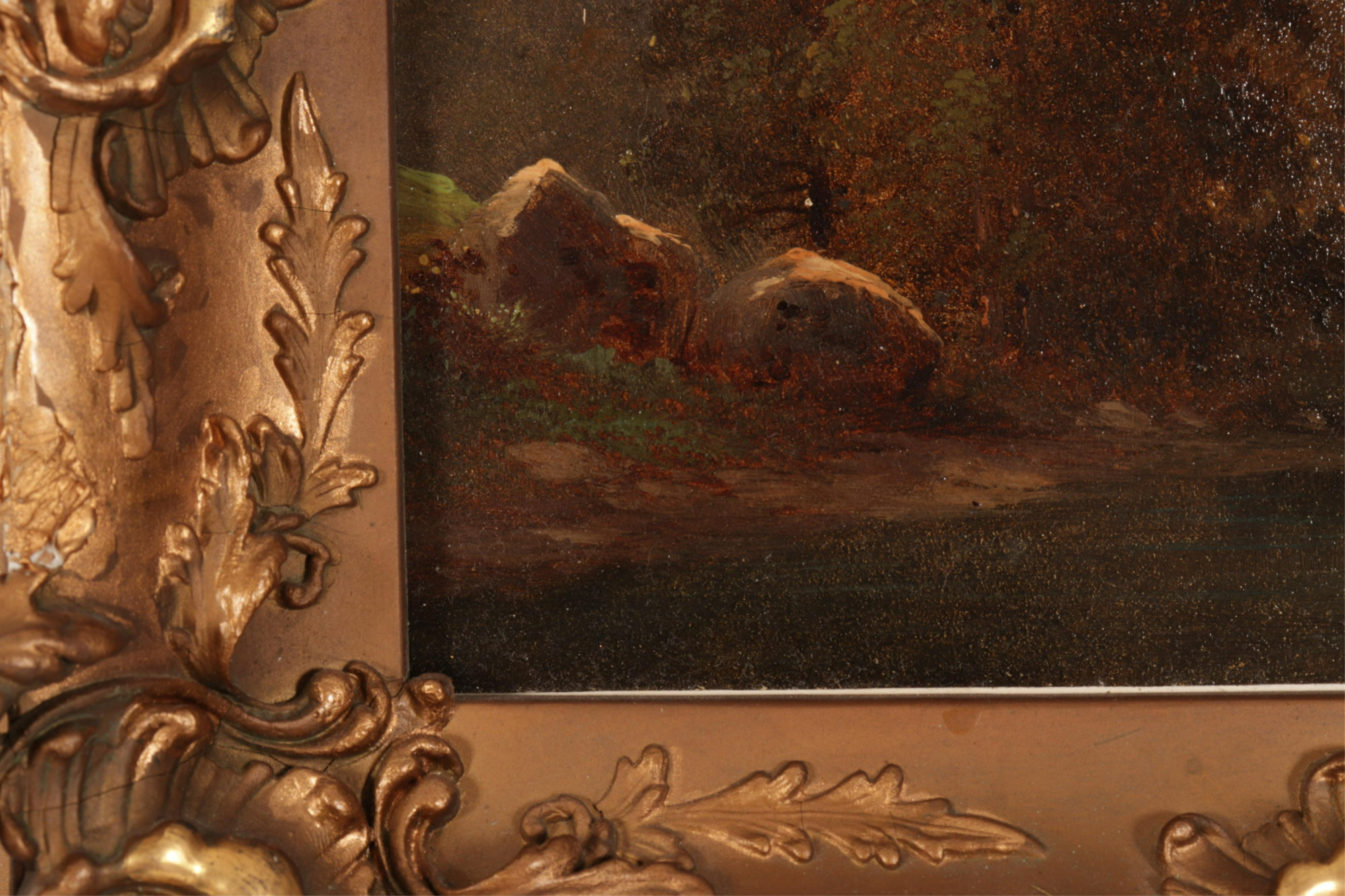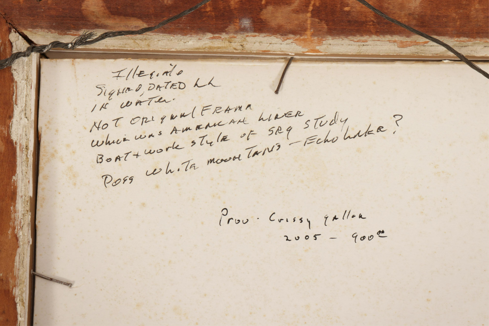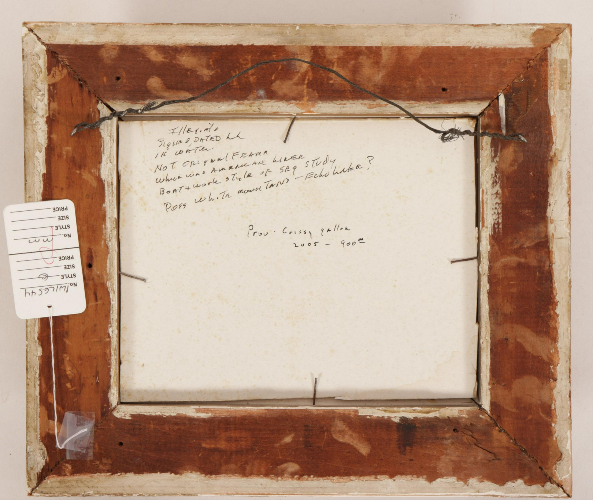 American School, L19th-E. 20th C., possibly New Hampshire White Mountains, signature indescript lower left, verso labeled with Provenance, O/B Dimensions: 7 x 8 1/2, framed 12 x 14 (IWIL6544)(MM)See More