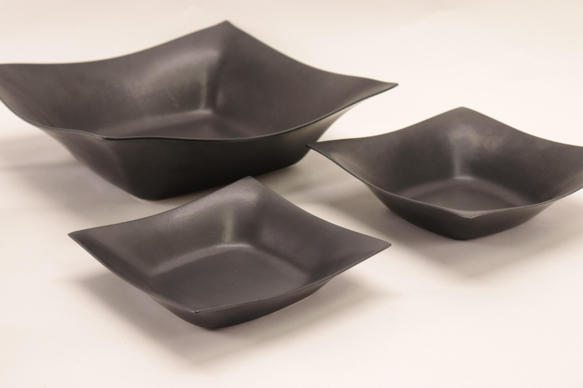 Armani Casa Matte Black Porcelain Dinner Service for 8, 3 plate sizes and 5 serving dishes, bowls Dimensions: Smallest dishes 8" Sq., Largest bowl 13 1/2" sq. (EBAZ5174/29)(WT)