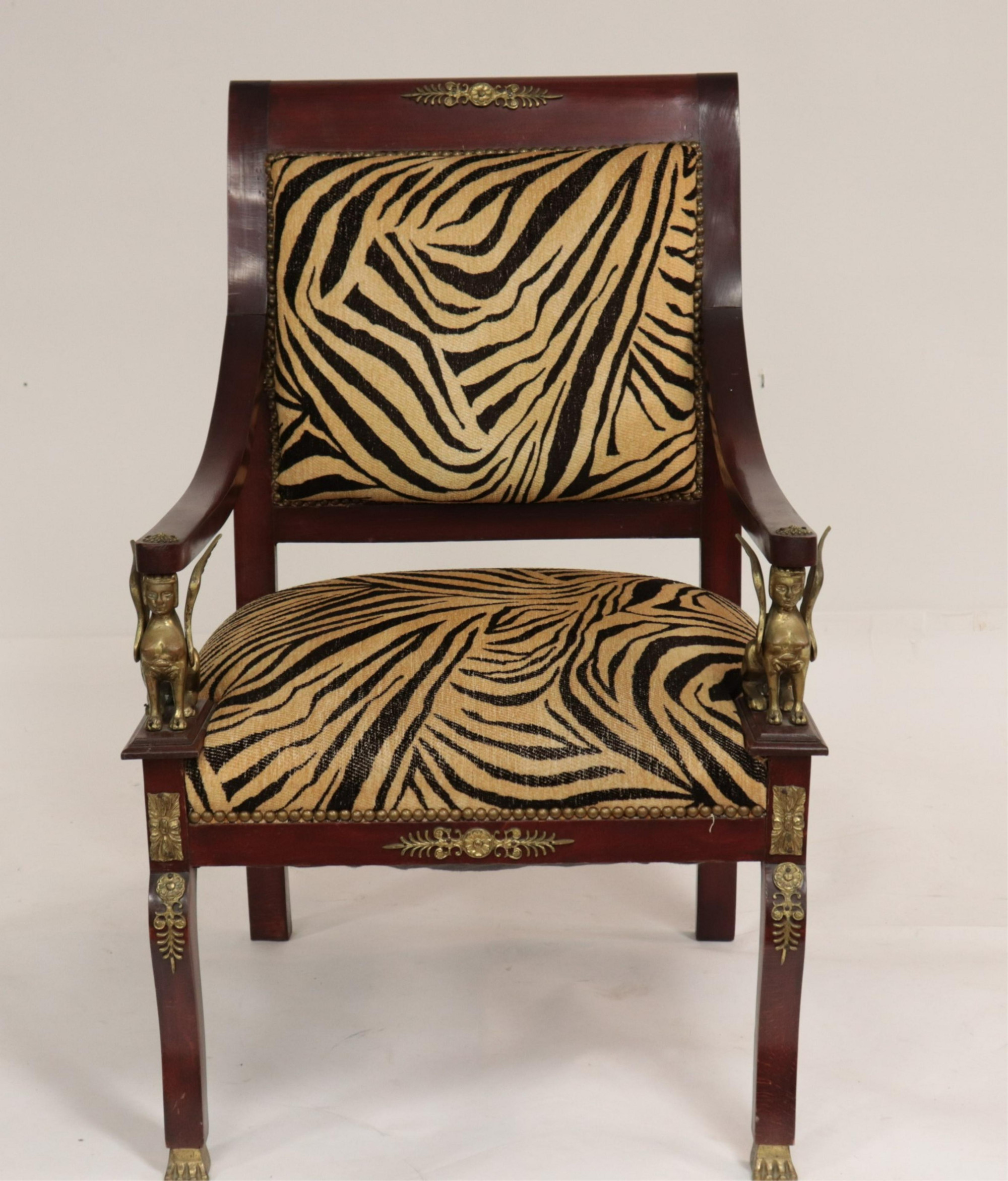 - Empire Style Brass Mounted Stained Beechwood Fauteuil, after a model by Percier & Fontaine