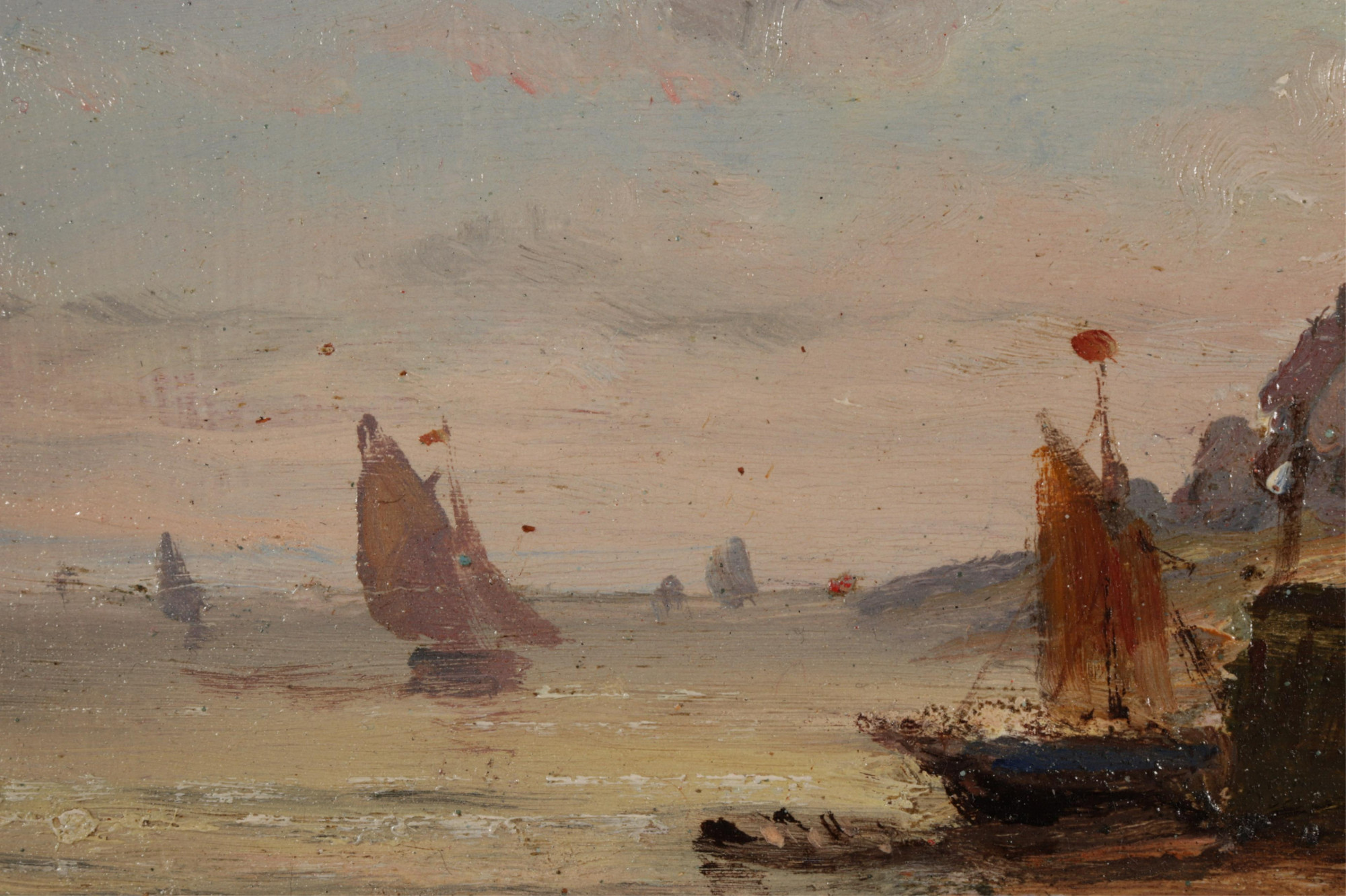 Eur. Sch. Houses at Shore, O/B, signed Dumont