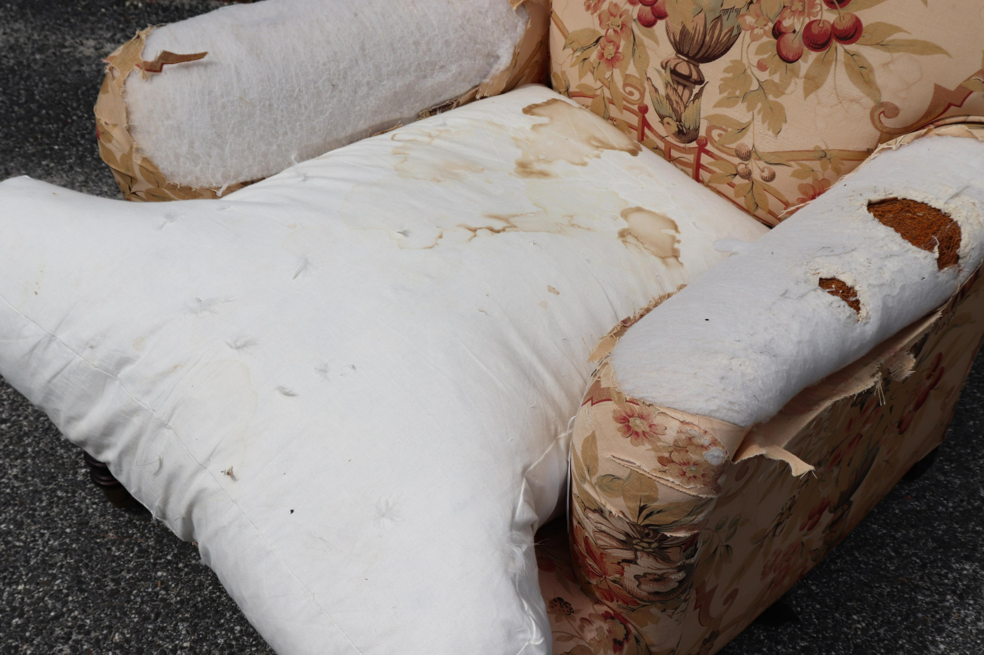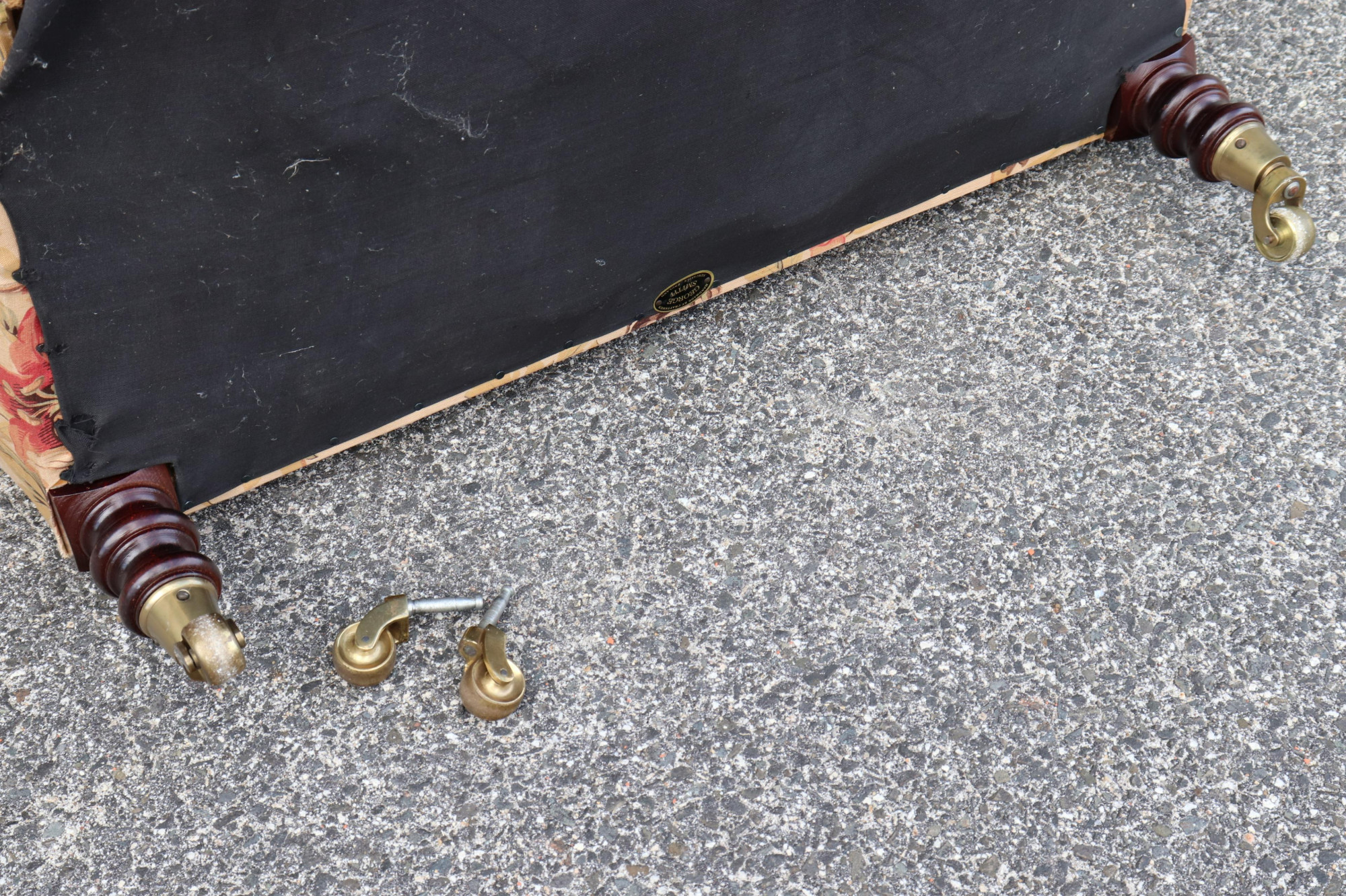 with wood turned legs on metal casters, label to underside From a Pawling New York Home Dimensions: 30 x 32 x 36 (USPR6146)(MM)