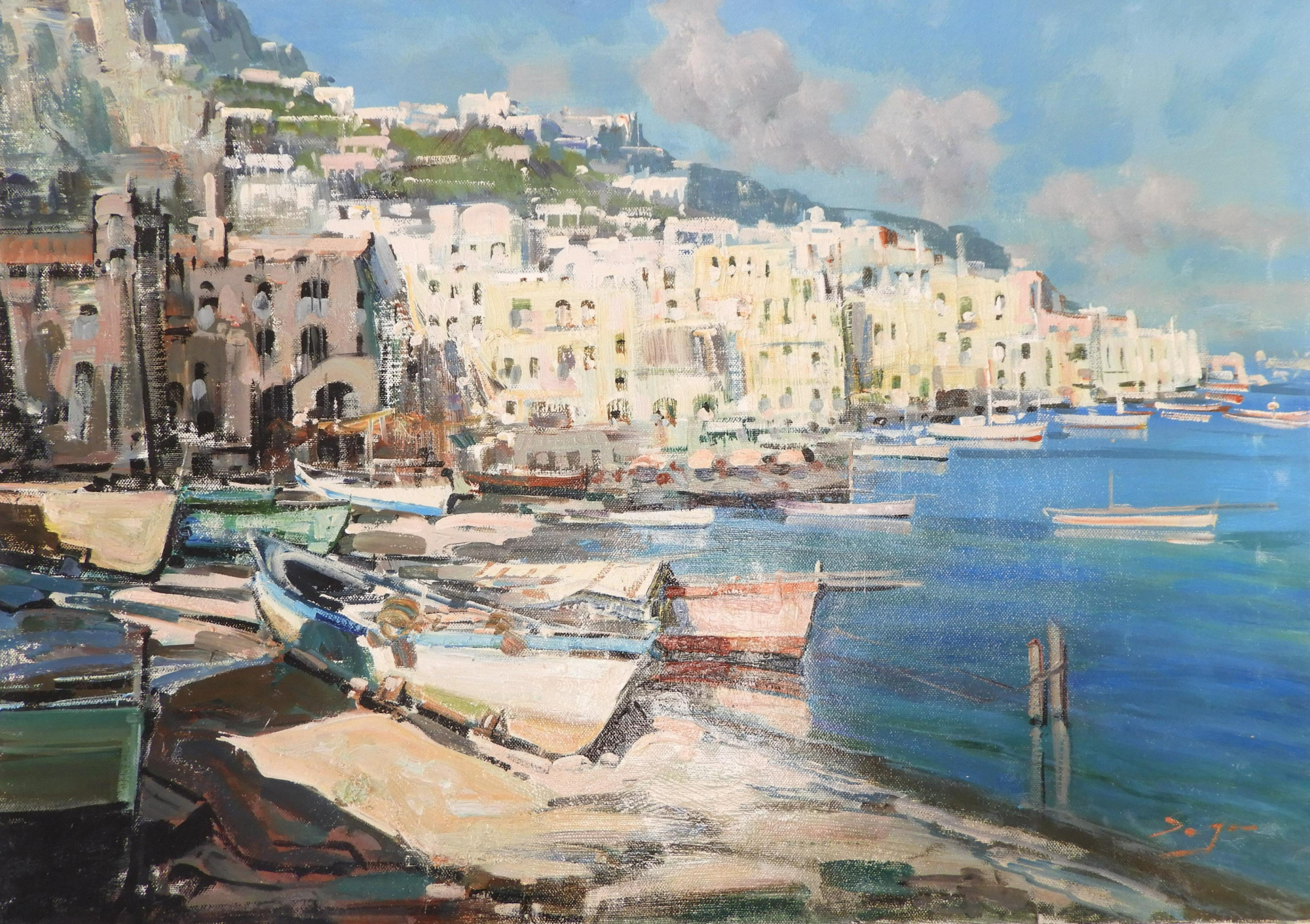 Mario Sanzone (Italian, b. 1946) View of Capri coastline, oil on canvas. Signed lower right. Property from a fourth generation gallery, NYC Dimensions: 21 x 28" unstretched (HEAR65)(EL)