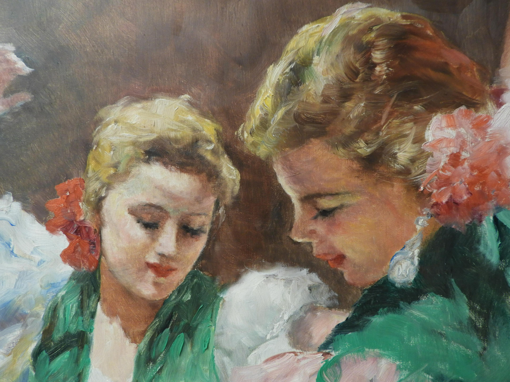Pal Fried (Hungarian American, 1893 - 1976) folk dancers, oil on canvas. Signed upper right. Property from a fourth generation gallery, NYC Dimensions: 30 x 24" unframed (HEAR111)(EL)