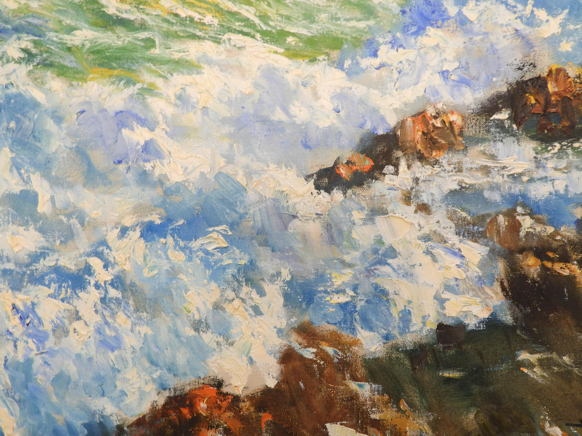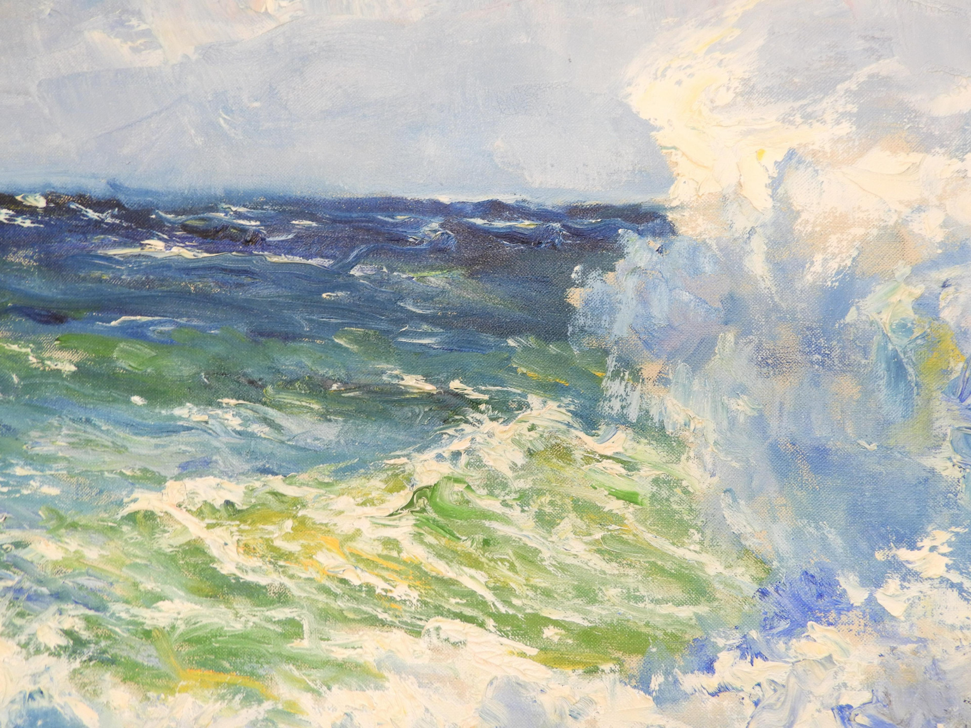 Pal Fried (Hungarian American, 1893 - 1976) Breakwater, oil on canvas of waves crashing on coastline. Signed lower right. Property from a fourth generation gallery, NYC Dimensions: 30 x 24" unframed (HEAR116)(EL)