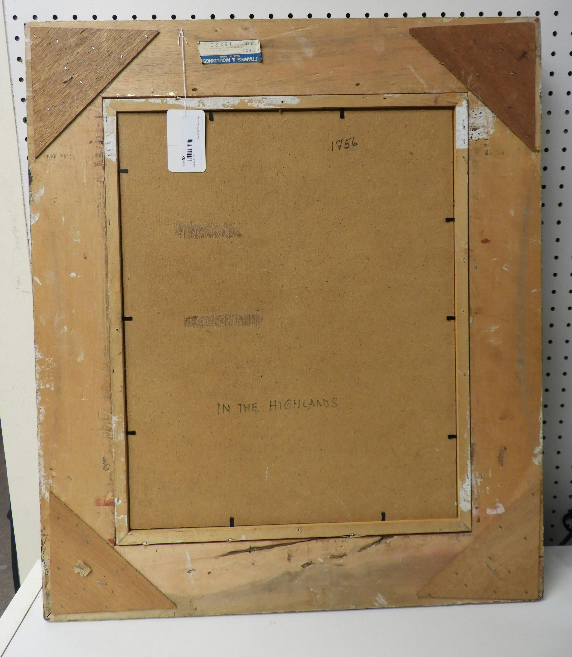 Robert Hamblen (American, 1932 - 2017). In The Highlands, view of landscape from hilltop. Oil on board. Scratch signed lower right, titled verso.