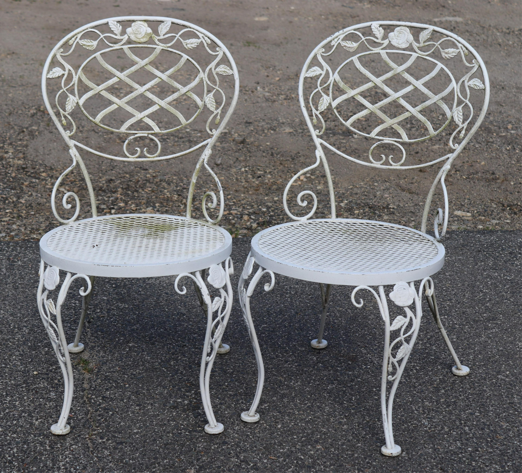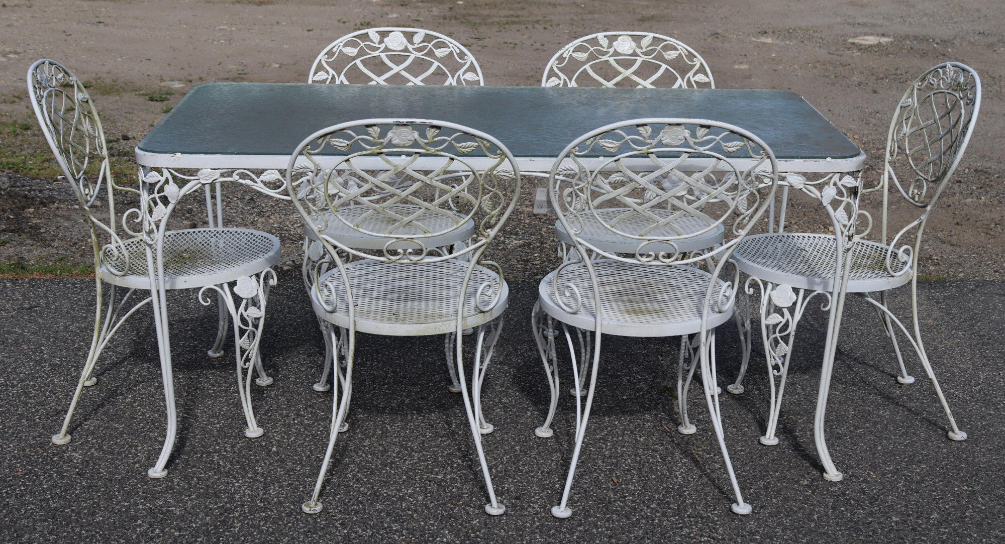 Woodard Chantilly Rose White Metal Table 6 Chairs